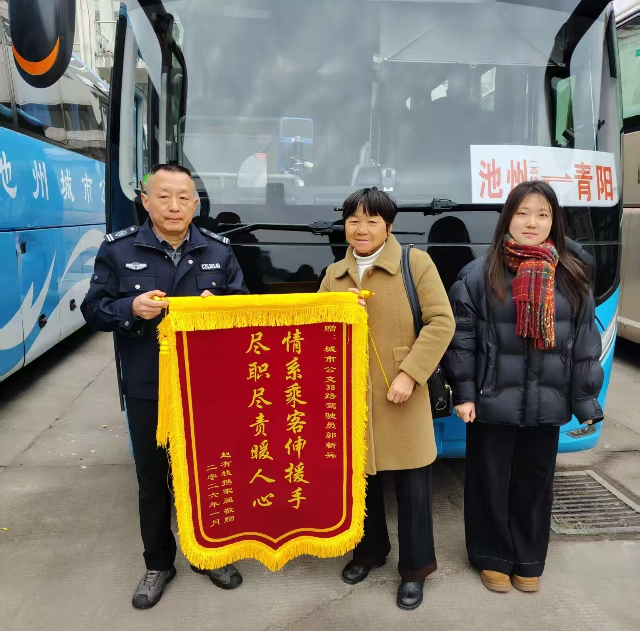 2026年1月14日下午,38路駕駛員郭新兵如往常一樣執(zhí)行從火車站開往青陽汽車中心站的班次。行駛至馬衙中學(xué)附近時,車廂內(nèi)傳來乘客急切的求助聲——一名中年女乘客突發(fā)身體不適。郭師傅當(dāng)即判斷需立即尋求專業(yè)幫助,第一時間駕車前往附近的馬衙派出所,同時向公司安全部報備情況,并緊急撥打120急救電話。郭師傅全程陪同,積極配合現(xiàn)場民警工作,直至醫(yī)護(hù)人員完成檢查。萬幸的是,經(jīng)醫(yī)護(hù)人員初步診斷,乘客身體已趨于穩(wěn)定,無需進(jìn)一步就醫(yī)。妥善安置好乘客、確認(rèn)無異常后,郭師傅才重新啟動車輛,恢復(fù)正常運營,全程未耽誤其他乘客的出行。