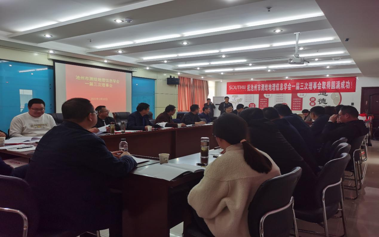 2023年3月30日,池州市測(cè)繪地理信息學(xué)會(huì)一屆三次理事會(huì),在設(shè)計(jì)總院五樓會(huì)議室勝利召開,市自然資源和規(guī)劃局有關(guān)領(lǐng)導(dǎo)及全市相關(guān)測(cè)繪資質(zhì)單位理事參會(huì)。