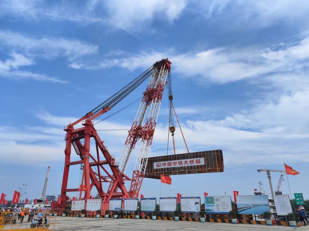 據(jù)悉,南主塔墩(4號(hào)墩)圍堰采用雙壁鋼套箱結(jié)構(gòu),總高29米,總重約5558.32噸,共分為四節(jié)吊裝,本次吊裝安裝完成的是底節(jié)圍堰,平面尺寸為80.2米×52.2米,高9米,占地面積相當(dāng)于10個(gè)標(biāo)準(zhǔn)籃球場,高度相當(dāng)于3層樓房。其共分為4塊運(yùn)輸和安裝,單塊重量高達(dá)226.2噸。鋼圍堰在工廠制作完成后,通過自航式甲板貨船經(jīng)320公里的水上運(yùn)輸,到達(dá)指定橋位吊裝下放。