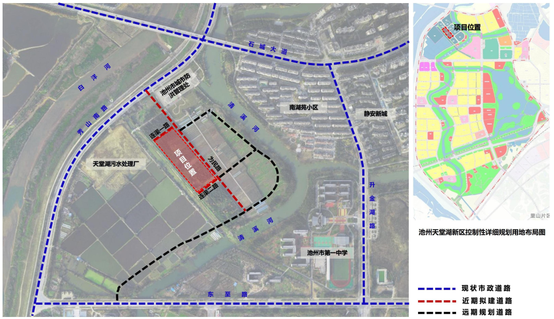池州城市市政公服基地(一期)EPC總承包項目位于池州天堂湖新區(qū)北部區(qū)域,秀山南路以南、清溪河以西、天堂湖污水處理廠以東。主要建設內(nèi)容為公交停保站,用地面積約29939㎡,建設附屬用房、維修工間、配電房各一棟。
