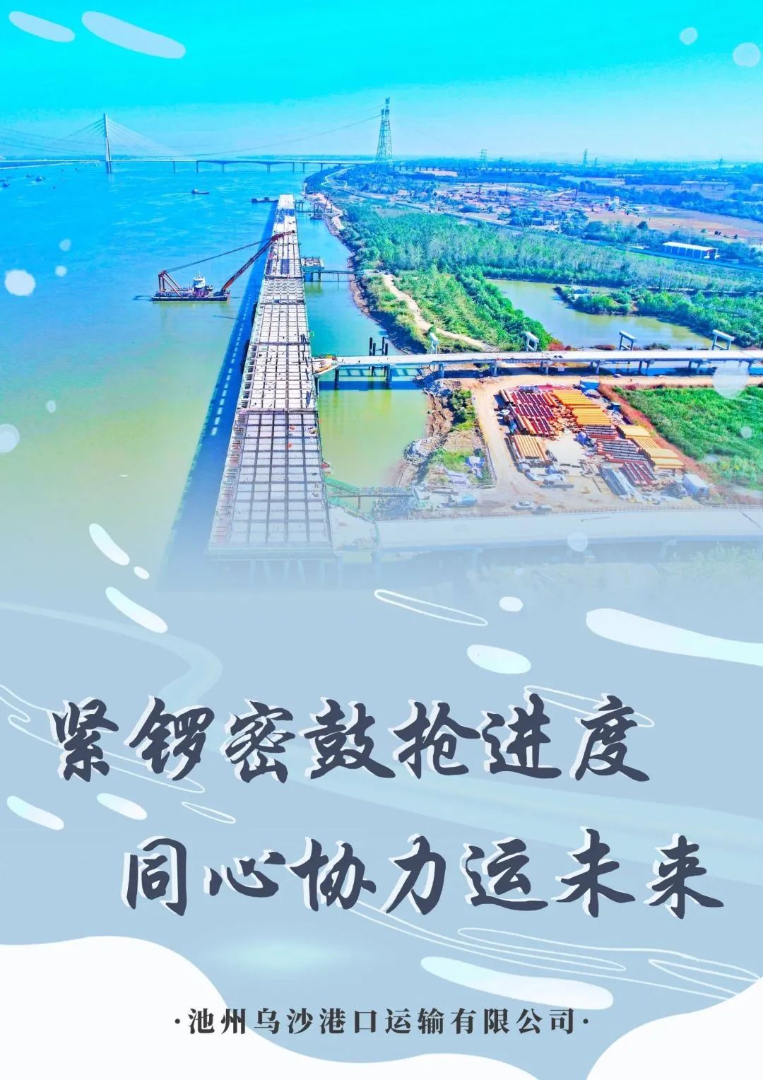 池州港烏沙港區(qū)公用碼頭項(xiàng)目系市投控集團(tuán)重點(diǎn)投資項(xiàng)目,也是我市重大公用港口基礎(chǔ)設(shè)施建設(shè)項(xiàng)目,現(xiàn)在正處建設(shè)期。截至目前,水域部分(碼頭工程、引橋工程和防洪影響處理工程)已完成產(chǎn)值約2.4億元,陸域部分征遷工作已完成征遷總量的95%,設(shè)備采購、融資工作正有條不紊地推進(jìn)中。下一步,池州烏沙港口運(yùn)輸有限公司將錨定目標(biāo),緊扣節(jié)點(diǎn),高質(zhì)高效如期完成烏沙港區(qū)公用碼頭項(xiàng)目建設(shè),為2024年預(yù)投產(chǎn)打下堅(jiān)實(shí)基礎(chǔ)。