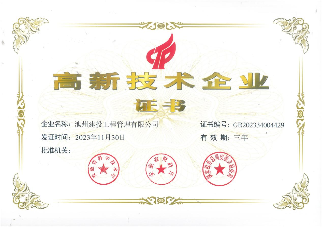 通過高新技術(shù)企業(yè)認定,體現(xiàn)了主管部門對池州建投工程管理有限公司自主創(chuàng)新能力、研發(fā)投入、成果轉(zhuǎn)化水平的充分認可,對于提升企業(yè)行業(yè)地位、品牌形象和市場競爭力具有重要意義。