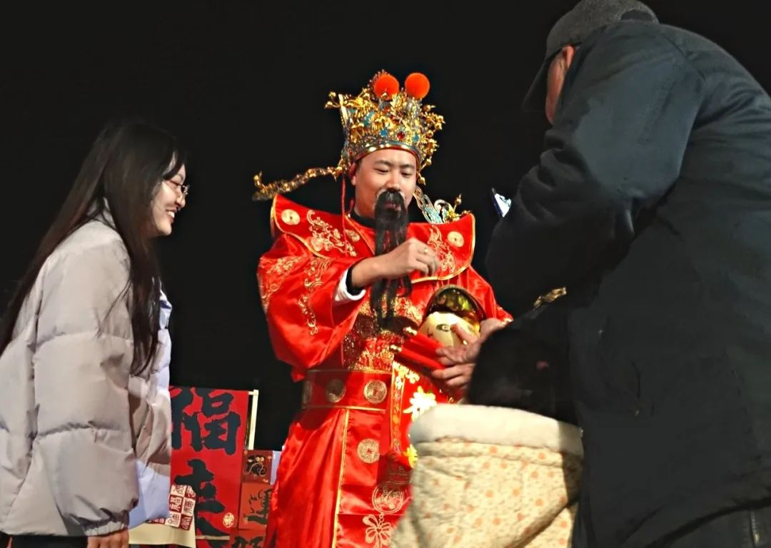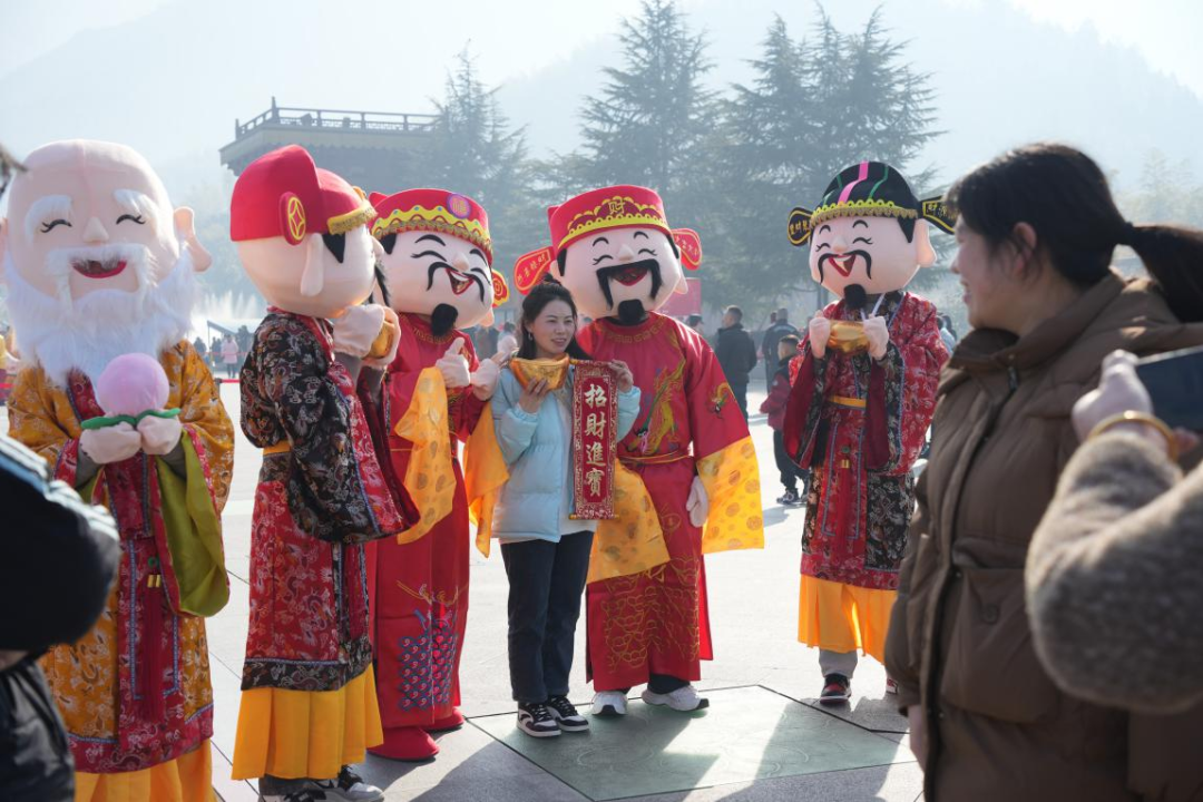 五路財神送祝福。新春佳節(jié)期間,分別在景區(qū)內(nèi)設(shè)有“福、祿、壽、喜、財”五個送福打卡點(diǎn),吉祥物們不定時在園區(qū)巡游,并為游客朋友們送上真摯的龍年祝福。大小朋友們也是追著福星排隊拍照打卡,現(xiàn)場呈現(xiàn)出一片人潮涌動的祥和景象。